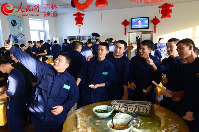 1月17日是北方地区小年的日子,室外温度已接近零下二十几度,但吉林省森林消防总队新训大队却很热闹。这天下午,吉林省森林消防总队新训大队的新队员徐伟贺,正和他的队友们为晚上的聚餐做准备。剁肉馅、揉面团、擀皮儿……你一言我一语,包完饺子再集体来张自拍,农历新年还未到,大队里已年味十足。