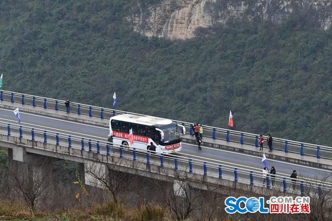 “终于通啦!”1月21日上午10时许,泸州市叙永县境内的川滇黔交界处,一辆满载乘客的“爱心包车”从水潦乡岔河村出发,驶上崭新的大桥,1分钟后就到达对岸的云南省镇雄县坡头镇德隆村,我省“渡改桥”项目、鸡鸣三省大桥正式通车,结束了两岸民众千百年来爬山渡船过河的历史。