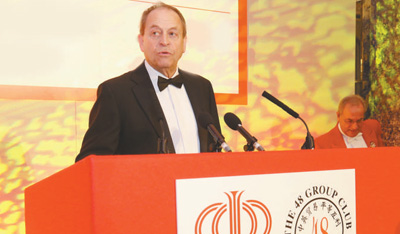 图为2019年1月31日,斯蒂芬·佩里在英国48家集团俱乐部和英国中国商会于伦敦共同举办的2019新春晚宴上致辞。资料图片