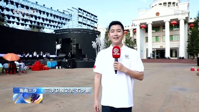 三沙卫视记者 石少鹏:这里是三沙市政府广场,《不负韶华·我们都是追梦人——2020年三沙市春节联欢晚会》正在筹备当中,舞台框架已基本成型,初步的舞美工作正在进行,舞蹈演员们正在紧张地排练当中。