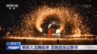 作为国家级非物质文化遗产,重庆铜梁火龙舞已传承了上千年。在表演中,当生铁完全熔化、铁水沸腾翻滚时,化铁匠用竹勺舀起铁水抛向夜空,与之配合的表演者用木拍对准1600度左右高温的铁水用力击打,形成“龙在火中遨游、人在火中狂舞”的精彩画面。