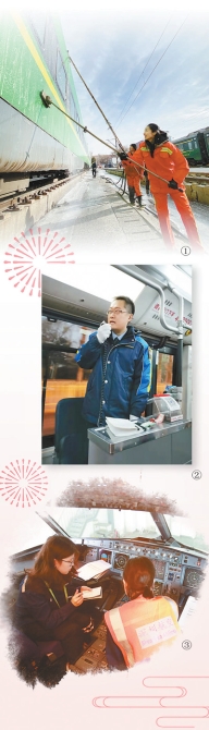 为了让亿万旅客“回得了,走得好”,无数春运人在工作岗位上默默奉献。他们中,有清洁列车外皮的刷车工人,拖着水管,举着刷子,露天作业,每天至少要清洁12至13列火车;有日复一日辛劳付出的公交乘务员,这段时间要服务很多提着大件行李,赶往火车站的乘客;还有保障飞行安全的航班检修人员,绕机检查的项目就有上百个,机上维护手册摞起来有1米多厚……