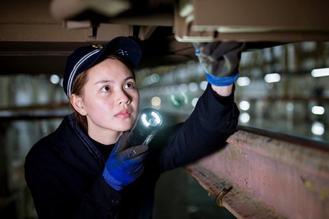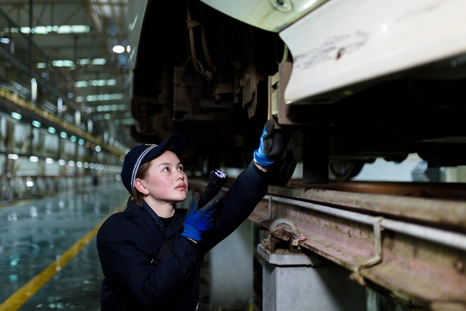她们的作业分为有电作业和无电作业两种状态。有电作业主要是对高铁车载设备进行试验,检查机柜内设备显示灯是否正常,机柜是否有异物、异味等;无电作业主要是对高铁动车组车底的速度传感器、应答器、轨道信息接收天线线圈进行防松脱检查等。