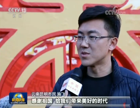 云南昆明市民 施飞:感谢祖国给我们带来美好的时代。