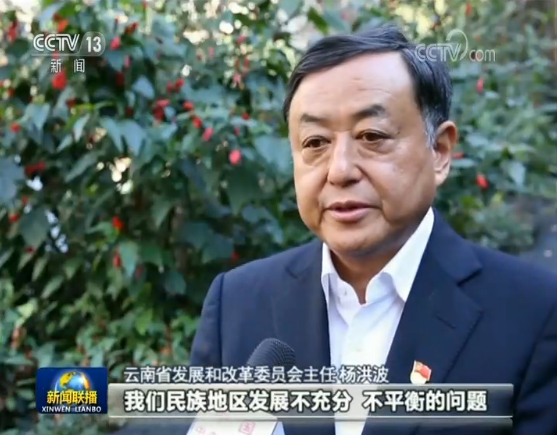 云南省发展和改革委员会主任 杨洪波:我们就是要切实解决好我们民族地区发展不充分、不平衡的问题,坚持新发展理念,进一步地打好污染防治攻坚战,不断地推动我们云南经济沿着高质量发展的道路前进。(总台央视 记者宝华 王溪 牟亮 张力 陈坚 厚波 大洋 齐涛)