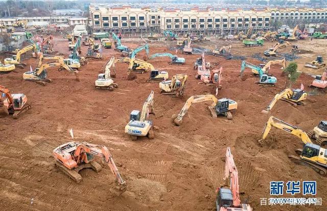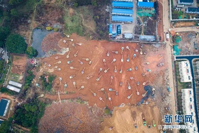 1月24日在武汉蔡甸区知音湖武汉职工疗养院附近拍摄的参照“小汤山”模式新建专门医院的施工现场(无人机照片)。新华社记者 肖艺九 摄