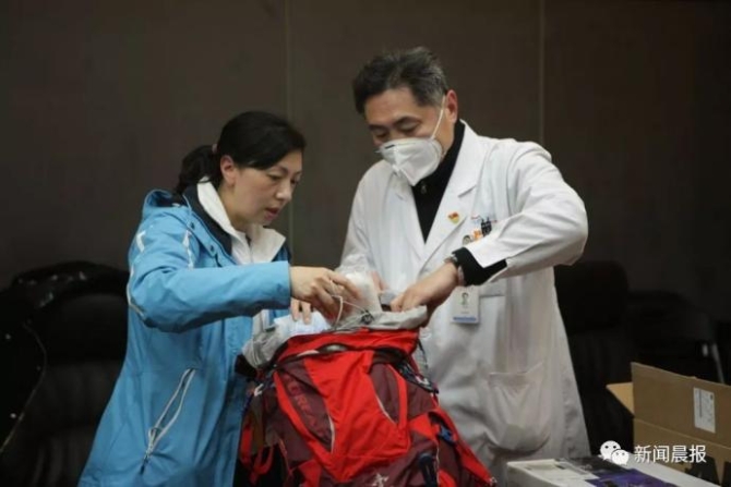 复旦大学附属华山医院总院感染科副主任医师徐斌,是此次华山医院支援武汉医疗团队中的医师,从华山医院出发前,他就像一位“大家长”一样,整点着行囊和医疗物资。看到医疗物资的纸箱上没有标识,他扔下背包拿起马克笔,在每一个箱子上写下医院的名字,生怕物资在运输过程中遗漏。