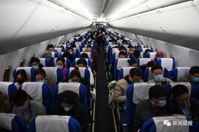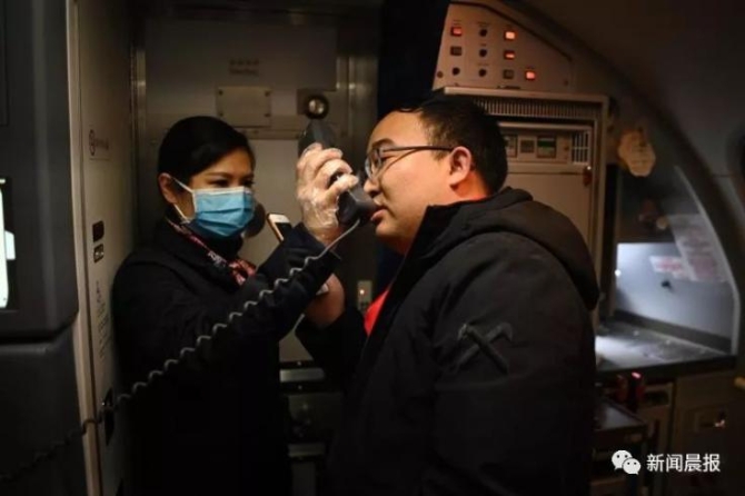 登机前,专家们面对面建立起微信群,起名为“上海援鄂医疗队”。由于随队携带了大量前线急缺的物资,使得托运舱满舱,机场工作人员将头等舱腾出来放置大家的行李和物资,使得出发的时间稍有延后。同行的医生们看起来十分乐观,但是大家都知道,前面有一场硬仗在等待着他们。