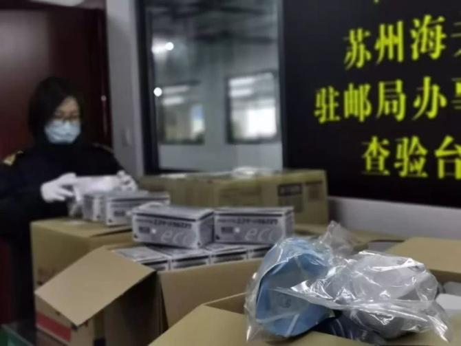 苏州海关驻邮局办事处验放个人寄递口罩邮件