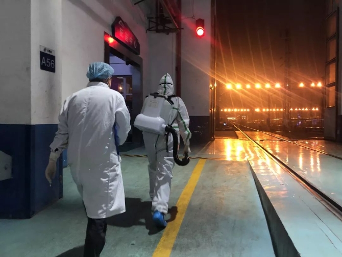 一趟趟,一次次,一整天下来,浑身上下腰酸腿疼,喉咙沙哑,但他们依然坚守在岗位上,将消毒工作落实到位,确保列车卫生安全。他们笑着说:“疫情来了,我们就是坚强防线……”。