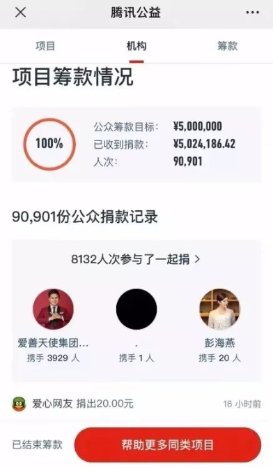 湖南省妇联、省妇女儿童基金会联合腾讯公益平台发起众筹,5个小时筹集了500万元。