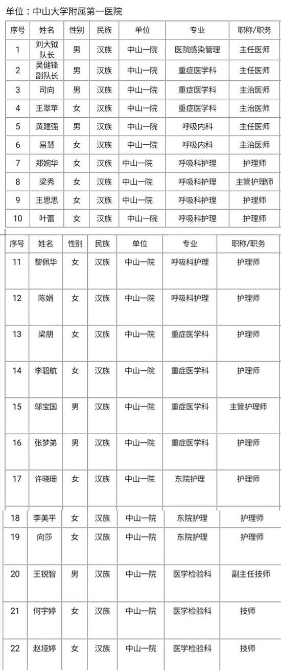 ↑ 中山大学附属第一医院医疗队名单