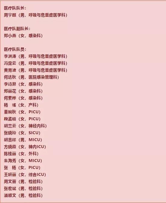 ▼危重症患者救治医疗队成员名单▼