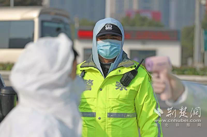 整理警服、戴上口罩,1月27日凌晨1时许,荆州市公安局沙市区分局沙隆达广场警务站巡逻民警李其昌,连续赶了31个小时的车程回到工作岗位,来不及休息就穿上装备,奔赴抗疫前线,与同事们并肩战斗。