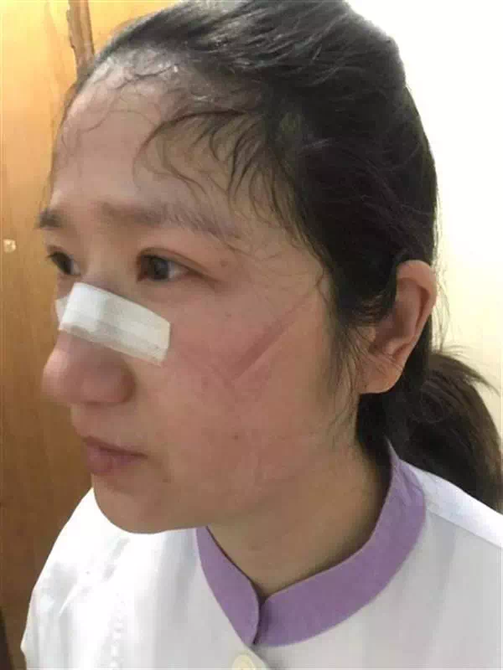 连续穿戴防护服6个小时,脸上留下深深的“最美印痕”。