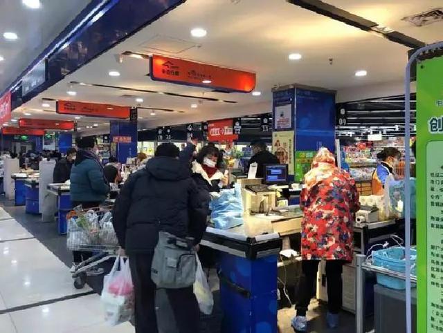 超市里的人挺多,都戴着口罩,日常用的生活用品都挺充足。