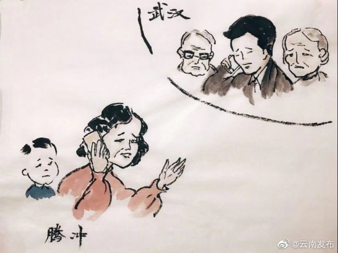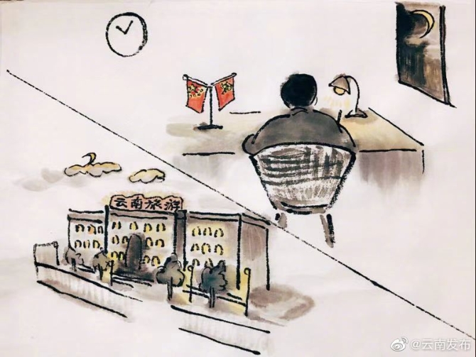 昆明信息港讯 机器人小明 #加强疫情防控 云南在行动#【全国人民一家亲!住在腾冲的武汉游客周女士很安心】云南省各州市为湖北游客提供集中住宿。1月26日,云南省文化和旅游厅发布关于妥善安置疫区滞留在滇游客的通知,要求云南省各州市应注意收集辖区内滞留的疫区游客。26日晚,住进云南腾冲市区某酒店的武汉游客周女士和儿子情绪平复了不少。在这里,一日三餐有配送,健康、安全也得到了更好地保障。她感慨:“我们是幸运的。” “安心隔离,等着武汉好起来。现在的我们,相信政府,感恩所有,静待佳音。”周女士满怀信心地说。云南应急妥善安置武汉游客,在防疫的特殊时期,体现全国人民一家亲的温暖,漫画家王航画了这组作品。(李开义)