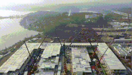 截至1月30日中午12时,雷神山医院项目总体建设进度完成40%。隔离病房区场地平整、沟槽开挖、沟槽管线预埋、非沟槽区PE膜施工全部完成,沟槽回填已完成90%,条形基础施工完成60%;集装箱总计进场1518间,场外改装完成约300套,现场已完成吊装30间。医护人员生活区A1-A7栋完成板房框架梁柱、楼面板、墙面板、屋面板等结构施工的70%。