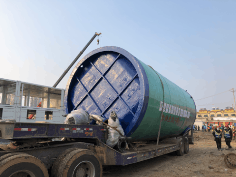1月29日19点30分,项目最大雨污水处理一体化泵站完成吊装,标志该应急医院排水“主动脉”就位。