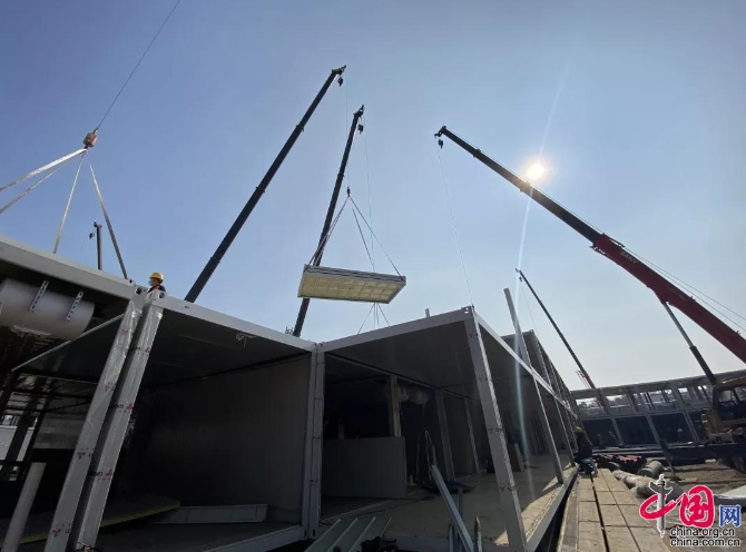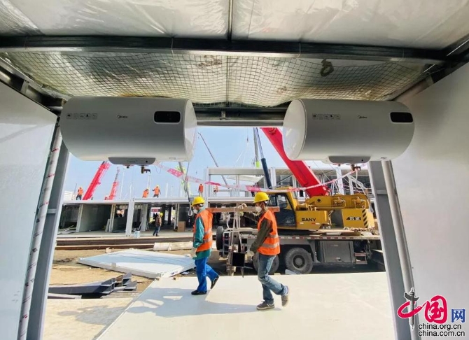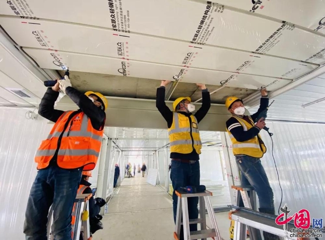 二号住院楼板房搭设完成85%,内部机电设备安装工序全面展开
