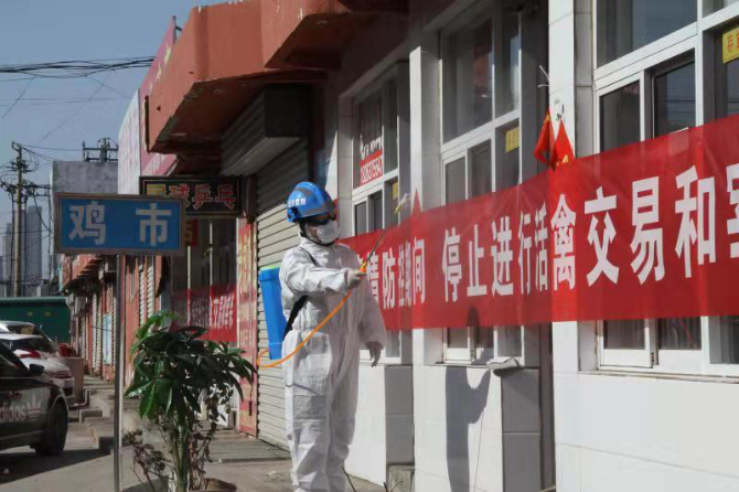 (徐志国在受感染小区消毒)