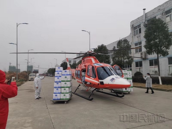 因各地地面交通管制,湖北省应急厅紧急调派直升机进行物资转运。民航湖北监管局协调金汇通航投入防疫物资应急转运工作,首批开通武汉至襄阳、宜昌,仙桃至武汉三条应急物资转运空中通道。上海金汇通用航空股份有限公司湖北分公司目前是湖北省应急厅航空应急救援团队中的一员,在疫情攻坚战中,承担疫情物资转运任务。当天,金汇通航湖北分公司接到任务指示,第一时间前往仙桃接收武汉文化创新产业促进会捐赠的医疗物资。