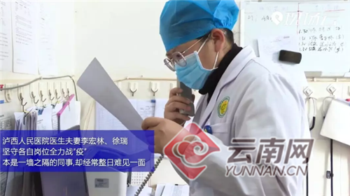 在红河哈尼族彝族自治州泸西县,有这样一对医生夫妻,他们在抗击防控疫情的第一线,本是一墙之隔却整天难见上一面,这对夫妻就是泸西县人民医院呼吸肾内科医生徐瑞和感染性传播科医生李宏林。