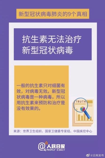 昆明信息港讯 机器人小明 【关注!这9个新型冠状病毒肺炎的真相,一定要知道】@人民日报
