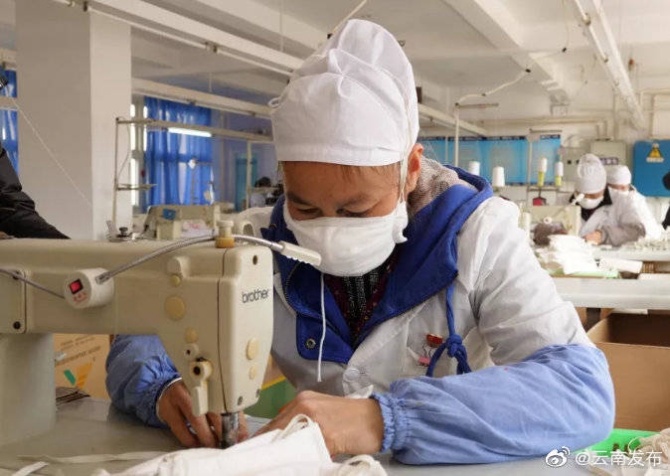 从1月26日起,云锡控股公司迅速安排下属的个旧云锡劳动防护用品有限责任公司,号召就近居住的员工放弃休息投入口罩生产。