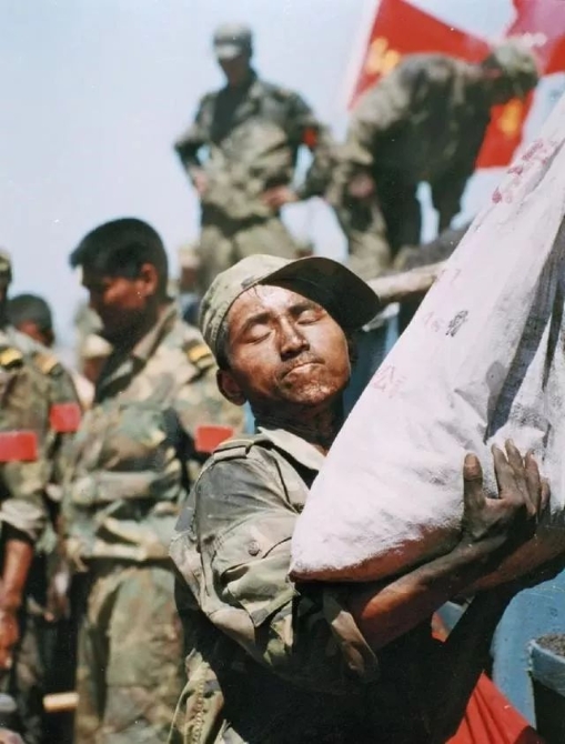 大堤上,那是旗帜与信仰的力量