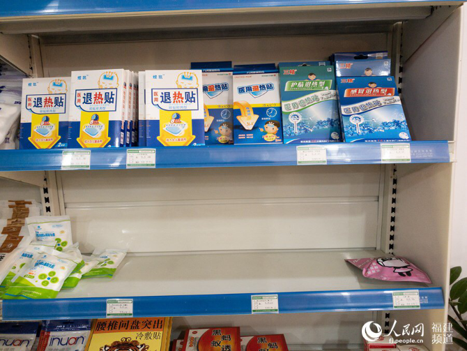 “一罩难求。”记者走访了南靖县多家药店,都听到了同样的说法。在一些药店,除了医用口罩以外,连酒精、消毒液、感冒药、温度计等也都售空。