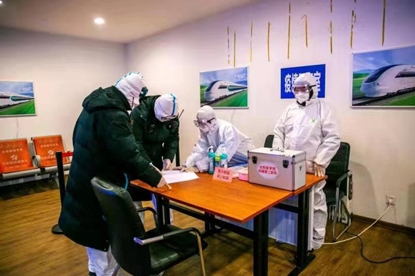 沈阳局集团公司防控办工作人员紧张有序开展疫情防控工作(沈阳铁路 供图)