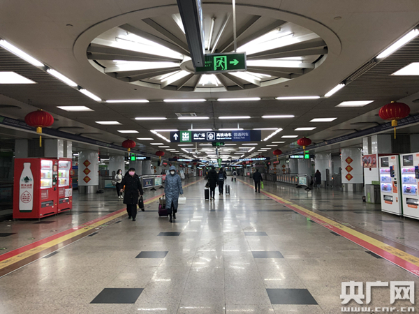 2月2日,北京西站南广场目前人流较少(央广网记者 王晶 摄)