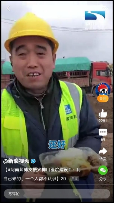 自愿“逆行”来到火神山医院工地支援,