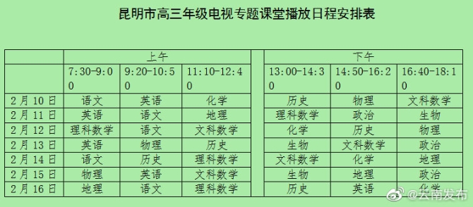昆明信息港讯 机器人小明 根据昆明市委、市政府和省教育厅的统一安排部署,在疫情防控特殊时期,昆明市教育体育局坚持以师生生命和健康为第一位,使广大师生“离校不离教,停课不停学”,最大限度降低疫情对各级各类学校教学工作的影响,昆明市教育体育局决定从2月10日开始实施电视媒体及线上课堂,指导学生学习和生活。昆明市教育体育局还制定下发《昆明市中小学幼儿园2020年春季学期延期开学实施线上教学工作方案》,明确高三学生的课程,组织名师专家团队,录制专题教学课堂;其他学年学生的课程由各县(市、区)和直属学校统筹并通知学生家长。实施分级分层教学高三毕业班以市教育体育局统筹组织实施,从2019年2月10日开始,主要通过组织名师专家团队,录制专题教学课堂,利用昆广网络在昆明教育电视台播出,由学校组织学生在家同期收看学习。同时,可通过昆明教育电视台微信公众号信息平台反复学习。初三毕业班由各县(市、区)教育体育局统筹组织实施。从2019年2月10日开始,可参照市教育体育局做法,通过录制专题课堂、网络在线、空中课程、QQ群体、电话微信等方式组织学生开展教学活动,具体方案由各县(市)区教育体育局制定。其他非毕业年级以学校为主体,由市县两级教育行政部门根据需求提供服务,学生可以通过“空中课堂”(网络课程)自主参加线上学习。突出分学段教学重点学前教育阶段侧重家园互动、家园共育。各幼儿园编制适合本园幼儿运动游戏学习生活作息表,指导家长科学安排时间,加强对家长膳食管理和相关保育工作的指导,组织开展在线教育和答疑;义务教育阶段认真落实《义务教育课程设置方案》。学科包括小学语文、数学、英语,初中语文、数学、英语、物理、化学、道德与法治、历史;高中阶段结合高考要求,根据课标安排课程,包括文理“3+3”共9个学科:语文、数学、英语、物理、化学、生物、思想政治、历史、地理;中等职业学校按照“一校一策”制定线上教育教学和管理方案,停止实习实训活动,严控学生流动;各级各类学校除组织学科教学外,要注重组织推送体育中考项目、广播体操、健身气功等运动训练视频,让学生在家中加强体育锻炼,增强身体素质。开展多渠道多形式教学活动开展电视教学辅导。针对高三毕业班学生,由昆明市教育体育局组织名师团队,录制专题教学课堂,利用昆广网络在昆明教育电视台播出,由学校组织学生在家同期收看学习(具体播出时间见附件)。由各县校汇总学生观看反馈情况报县(市)区教育体育局再汇总上报市教育体育局。组织网络在线教学。由学校科任教师引导学生开展在线学习,以“空中课堂(网络课程)”为主要形式,充分应用教育部搭建的国家网络云课堂、人民教育出版的“人教点读”APP、“学习强国”等网络平台,为学生提供更好的寒假学习和生活指导。用好“优课”教育资源。各级各类学校充分利用国家和省、市 “一师一优课”课程资源,指导教师学生点击观看,由学校任课教师组织开展授课辅导、线上交流、答疑解惑、作业布置与批改等教学活动。利用QQ家校师生群教学。由班主任利用原有的家校联系方式,或通过升级、设置QQ家校师生群等,组织相关教育教学工作。在QQ家校师生群中,教师可以发布学习资料、布置作业,学生可以提交作业。家长也可了解孩子日常作业情况,更便于对学生管理。班主任要加强对QQ群的管理,QQ群只能用于家校沟通情况,开展正常的教育教学工作。通过电话教学辅导。由任课教学、班主任根据本班、本学科学生平时学习情况,通过电话、微信、信息等方式,有针对性的对学生开展学习指导。利用好各学校现有课程资源。由学校提供已经购买或使用的正版网络学习资源,在延期开学期间免费向毕业班开放,学生自主选择使用学习。引入第三方合作教学。有条件的县(市、区)、学校,可以对接有愿意为昆明市教育免费服务的第三方公司的相关产品,供各学校自主选择,共同开展线上教学辅导。发挥家长监督职能。通过班级QQ群或微信群,加强家校联系,发挥家长监督职能,督促学生按时参加学习活动,确保学习质量。加强教学质量管理建立三级联动机制。由市教育体育局统筹,市、县、校三级联动,共同做好春季学期延期开学的教学管理工作。市教育体育局以高三年级的高考备考辅导为重点,以电视专题课程和网络教学为主要形式,开展教学辅导;各县(市)区教育体育局负责初三年级的教学指导活动;各学校负责非毕业年级各学段的教学管理指导工作,以年级班级为单位,由班主任和科任教师(备课组)组织好学生参加线上教学。建立分工协作机制。市、县两级教育行政部门组织及实施,做好人员与经费保障;教育科研部门负责制定授课方案、明确授课计划和授课内容、组织授课教师、开展好线上学科教学、交流与答疑、作业布置、效果检测,收集意见和建议,并适时调整和完善授课方案;市教育电视台负责市级线上课堂的录制与播放,市级“优课”的筛选,网络技术保障等,同时收集教学过程中的意见建议及时向教育行政部门和教科院反馈;各县(市)区教育部门、学校负责组织学生收看电视课堂和网上在线学习;各任课教师负责学生作业批改,并收集实施过程中的意见建议及时向学校反馈。建立效果监测反馈机制。由各学校任课教师根据学生