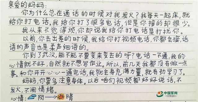 妈妈,你要多注意身体。以后咱们视频都好好说话,不发火,不闹情绪。心情从阴天变大晴天。