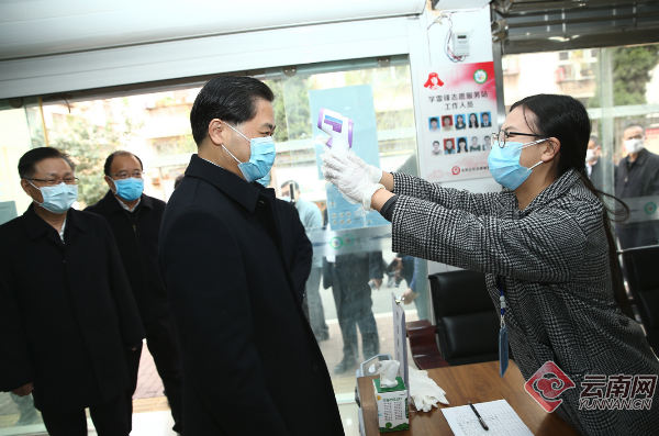省委书记陈豪率队来到玉溪市,下沉一线实地检查新型冠状病毒感染的肺炎疫情防控措施落实情况。记者 张彤/摄