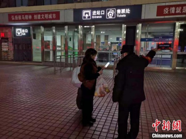 身着警服,戴着护目镜和护理口罩,冯海龙在侯马火车站广场来回巡逻,“在往年春节后返程高峰,平均每天要迎接上万名旅客,广场上人来人往,人们都是大包小包,我们要保证火车站广场、候车室及站台上的治安安全。而今年,大家都戴着口罩,行色匆匆,在候车室里,人们保持距离,一切井然有序。近两日,旅客数量相对于之前还是比较多的,昨天有1000多人。”