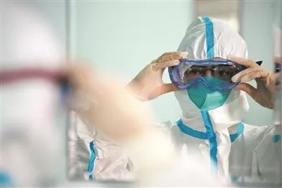 △ 近日,在华中科技大学附属同济医院,一名医护人员整理装备,即将进入隔离病房。