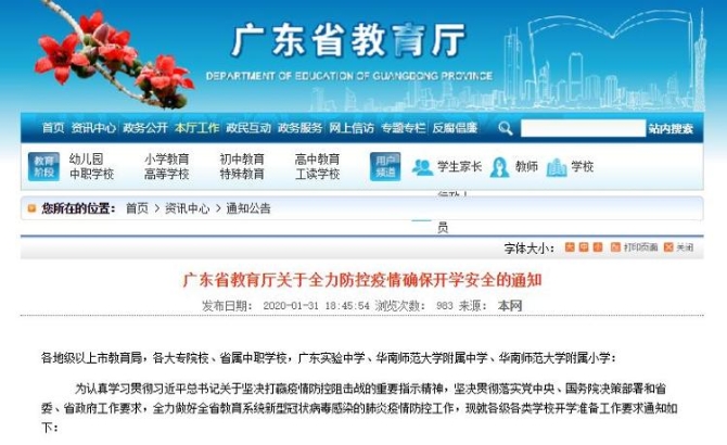 广东省教育厅近日下发《关于全力防控疫情确保开学安全的通知》,现就各级各类学校开学准备工作做出要求。