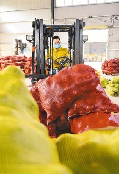 江西省赣州市会昌县蔬菜企业工人在加紧装运第一批100吨小南瓜,驰援湖北武汉等地的蔬菜市场。朱海鹏摄(人民视觉)