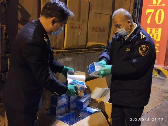 2月3日中午,一批供应武汉的进口医疗物资运抵广东佛山的南海三山港,该批物资为一次性乳胶手套645万双,价值约22万美元。广州海关所属佛山海关驻南海办事处启动绿色通道快审快放,用时15分钟就办结现场通关验放手续。
