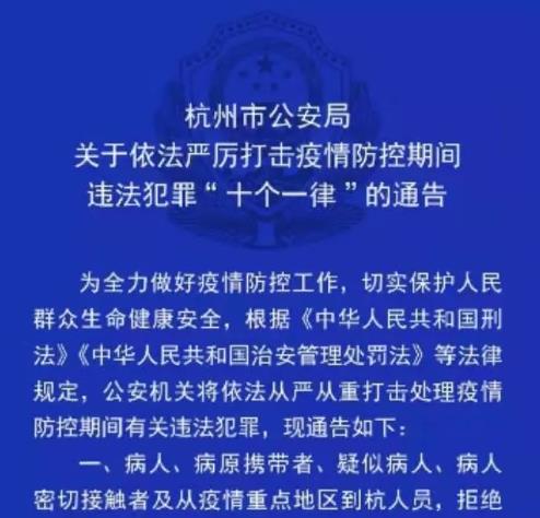 前两天,杭州市公安局针对疫情防控,发布了一则通告,引发了不少讨论。谭主注意到,通告上列了九种行为,一律追究刑事责任。其中之一是拒不配合地铁站等公共场所量体温。