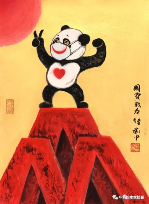 我创作了一幅《国宝战疫》的作品,因为我喜欢画国宝熊猫,在我心中那些在湖北疫情前线抢救新冠病毒感染者,及那些与病魔抗争的病毒感染者,他们的生命就如同国宝一样宝贵,我希望通过我的画笔为他们点赞,通过彩墨为他们加油!面对这场战疫,武汉必胜!中国必胜!——刘中