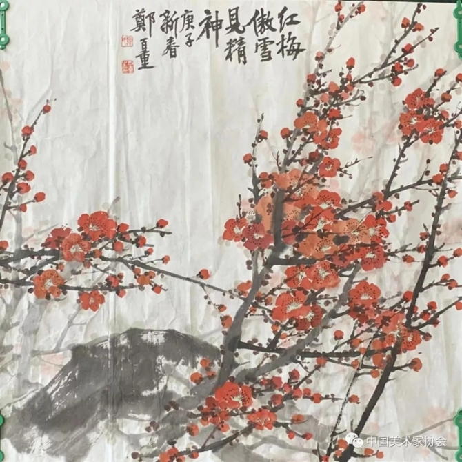 《红梅傲雪见精神》 郑百重 中国画