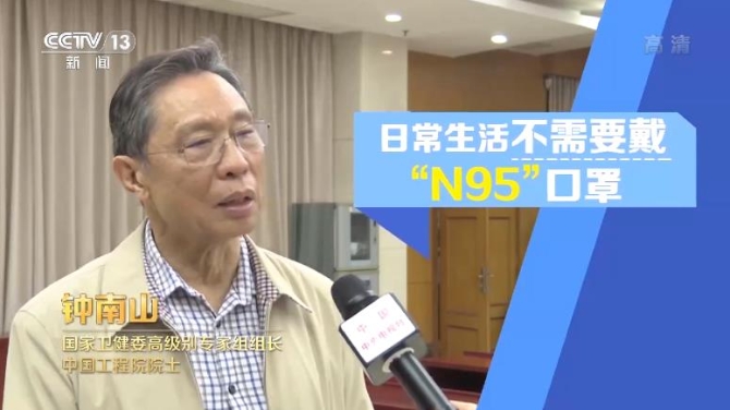 钟南山:日常生活不需要戴“N95”口罩,戴普通口罩,普通外科口罩就可以。