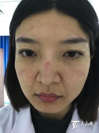 脱下防护服,刘雪梅的鼻梁和脸部都被口罩压得红肿。