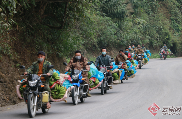 2月2日,一辆货车从河口瑶族自治县发往湖北,车上满载着莲花滩乡石板寨坡头小组93户村民自发捐赠的22吨香蕉,这其中有47户是建档立卡贫困户。