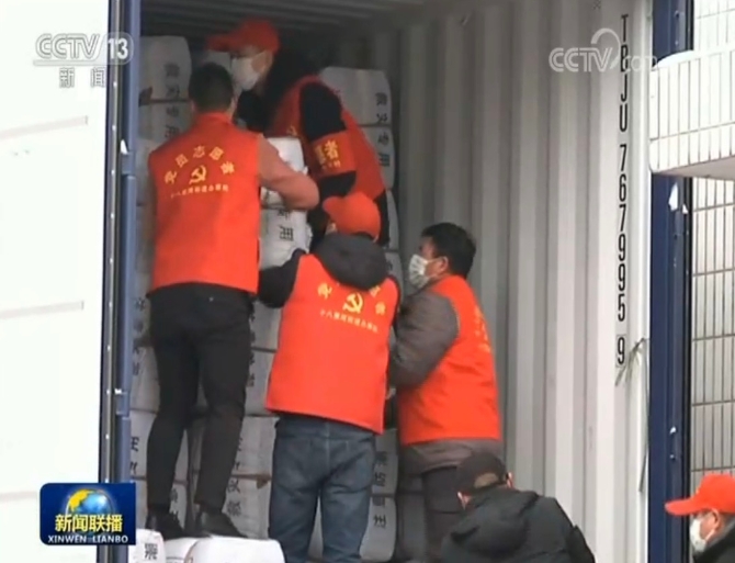 由于人手紧张,为了以最快的速度把物资送到武汉,当地十八里河村的50多名党员了解到情况后,第一时间赶来帮忙。