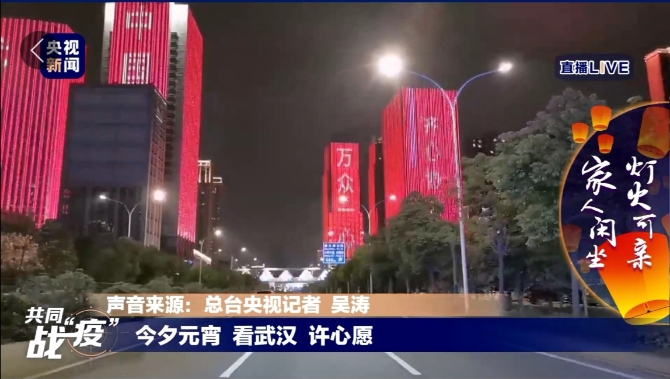 网友赵天天:“今天是正月十五,愿所有一线医护人员、政府机关人员、军警科研人员、媒体工作人员、快递外卖小哥、社区和村口等防疫人员,元宵节快乐!你们拼命守护着每座城市辛苦了!目前最想看到一条新闻:新型冠状病毒成功得到控制,再无人员感染。保护好自己和家人,我们万众一心,共渡难关!中国加油!”